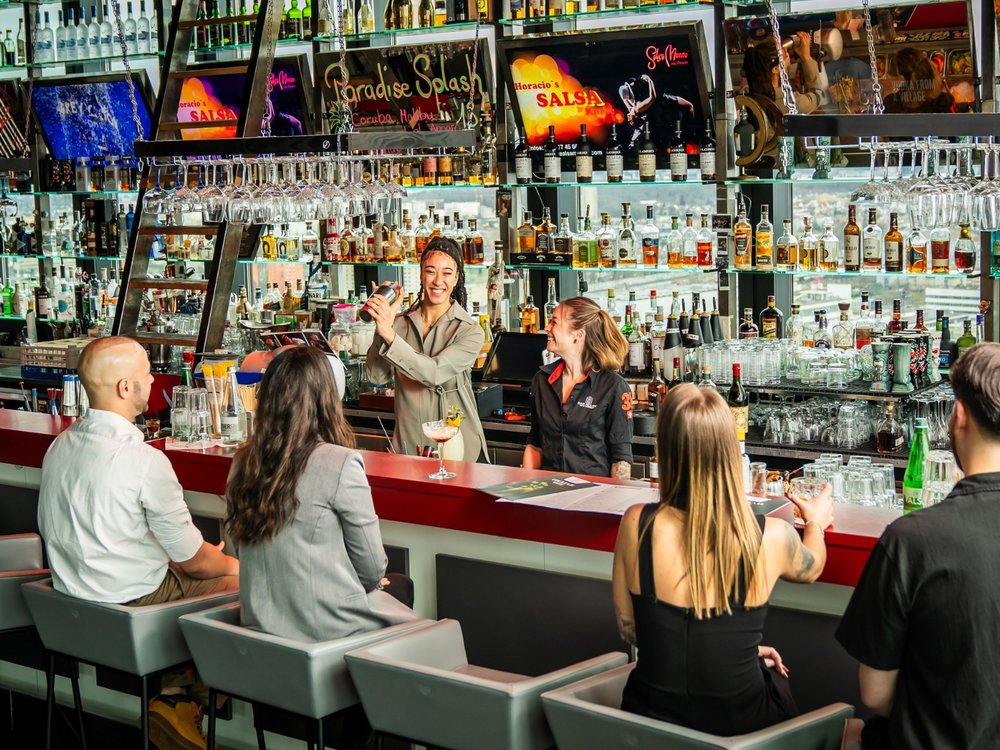 Buchen Sie die komplette Bar Rouge im 31. Stock exklusiv nur für sich (und Ihre Begleitung, bzw. Gäste). Sie müssen sich die Bar nicht teilen – Sie sind ganz für sich allein. Geniessen Sie die atemberaubende Aussicht über die Stadt Basel und den Rhein.