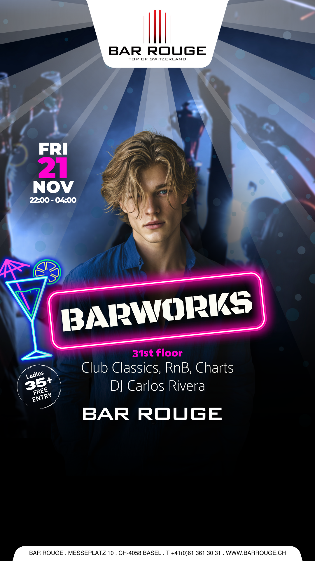 Ab 22.00 Uhr: CHF 10.- Damen ab 21, Herren ab 23 Jahren (Frauenbegleitung stets erwünscht!)