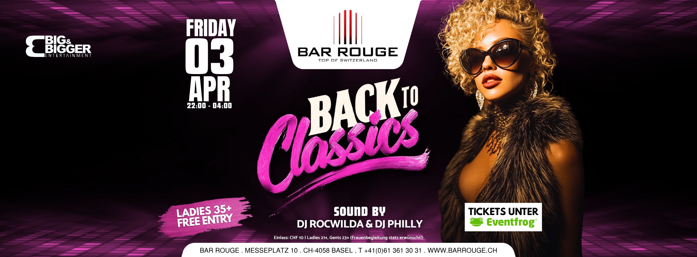Ab 22.00 Uhr: CHF 10.- | Damen ab 35 Jahren gratis (Frauenbegleitung stets erwünscht!)