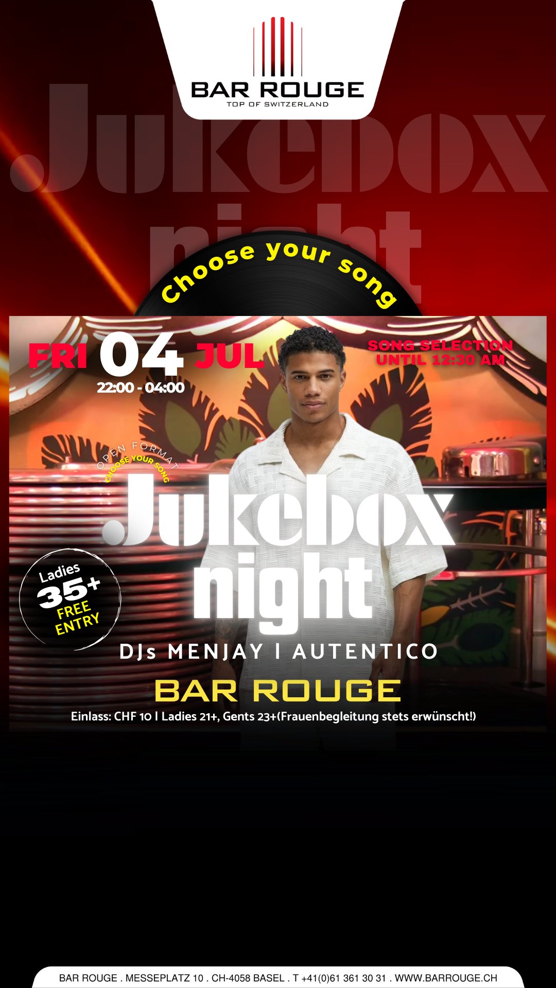 Bereit für die ultimative Party, bei der DU den Ton angibst? Einen Freitag im Monat verwandeln wir die Bar Rouge in die heisseste Jukebox der Stadt!