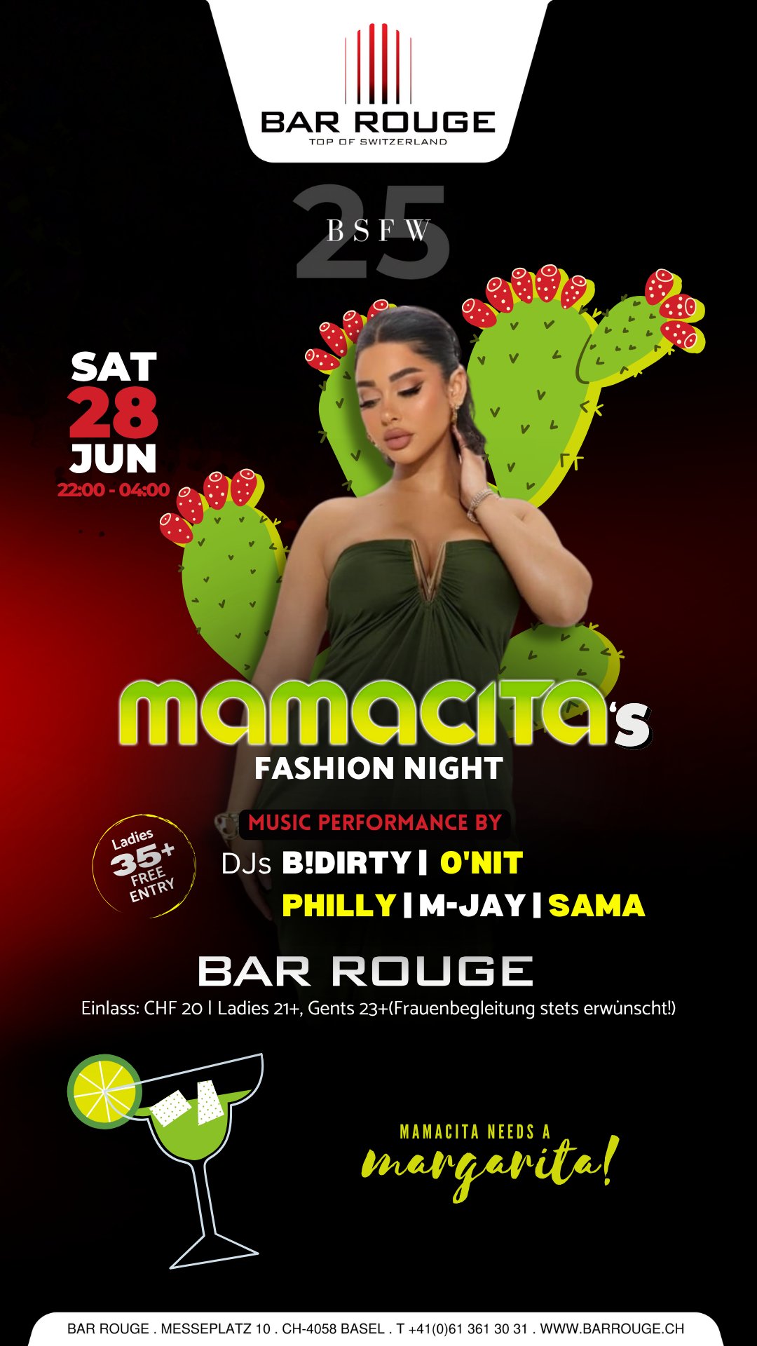 Ab 22.00 Uhr: CHF 20.- | Damen ab 35 Jahren gratis (Frauenbegleitung stets erwünscht!)
