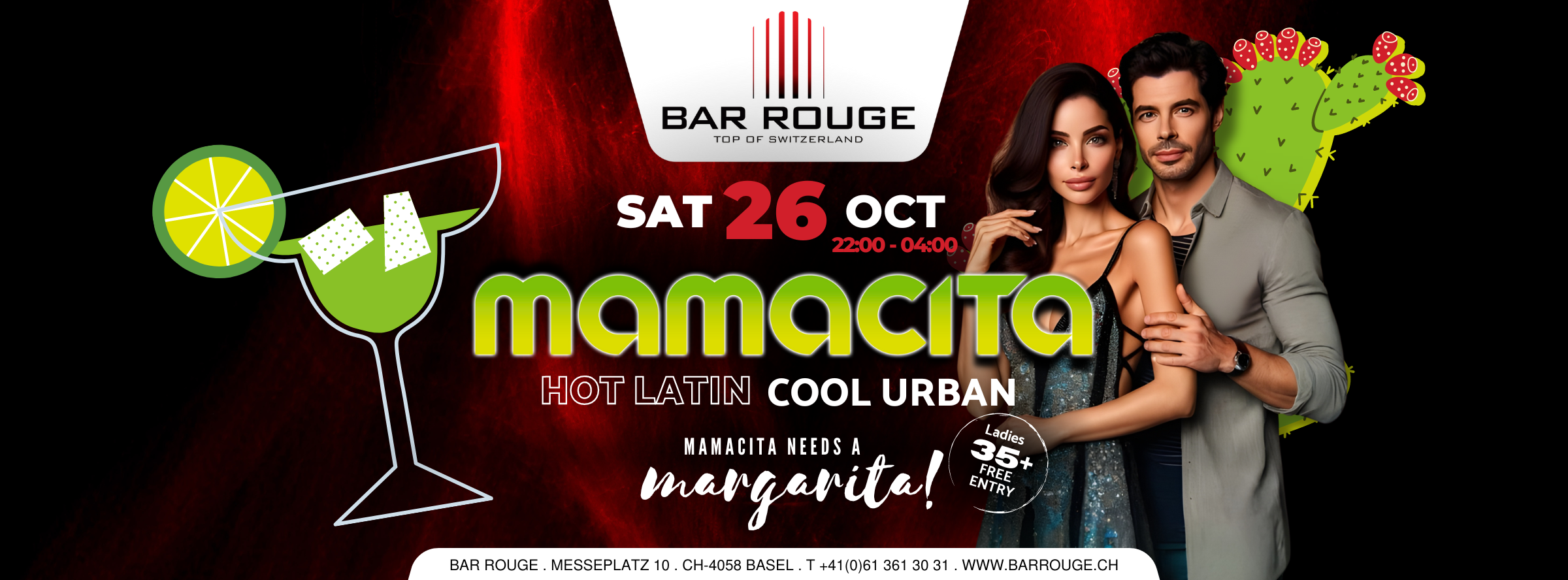 Diese Party ist schärfer als das mexikanische Essen! Komm und schwinge mit uns die Hüften zu den heissesten Latin Sounds der City. Wir wissen ganz genau wie heissblütig unsere Partygäste sind, weswegen es zur Abkühlung coolen Urban Sound & die besten Cocktails hoch über den Dächern von Basel gibt.
