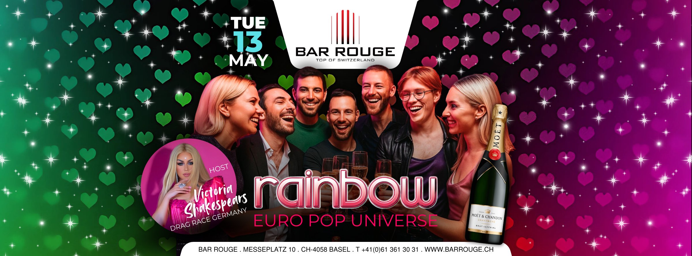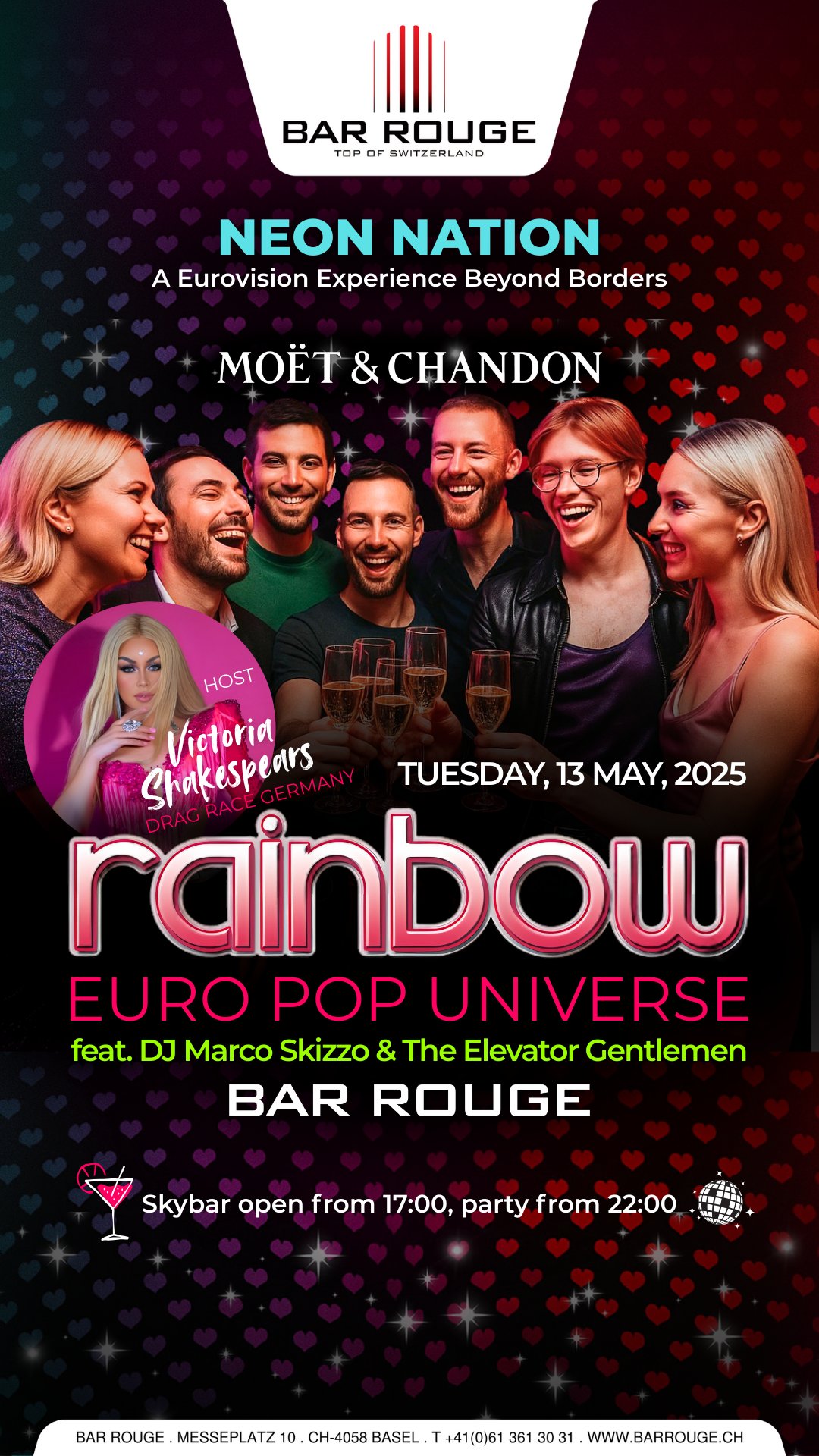 A night of sparkling pop, fierce glamour and euphoric beats. Let the colours lift you higher.