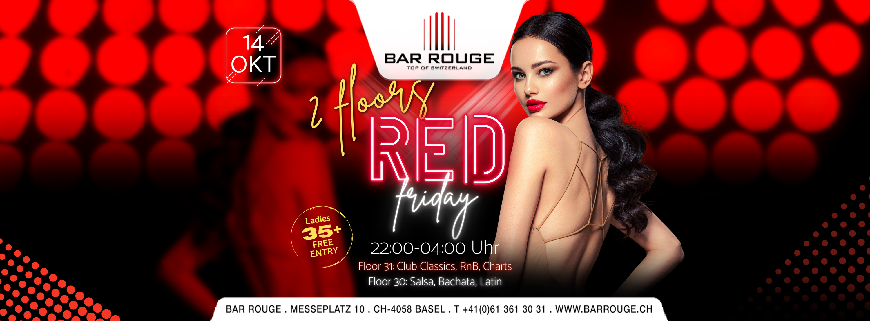 ab 22.00 Uhr: CHF 10.- | ab 23.00 Uhr: CHF 15.- | Damen ab 35 Jahren gratis (Frauenbegleitung stets erwünscht!)