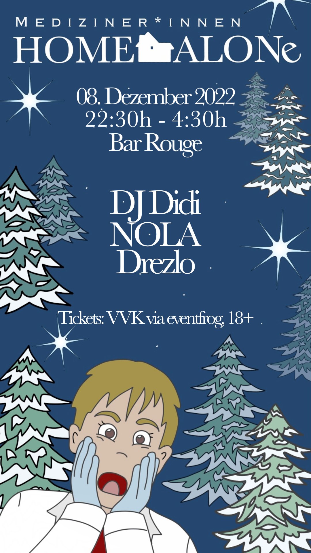 Genau! Mir sind wieder zrug! Am 8. Dezember findet die nöchsti Party in dr Bar Rouge statt. Passend zur Jooreszit isch au s Motto: Mediziner*Inne Home Alone. It’s an all-white Christmas! Eures Outfit dörf so wiis si wie de Schnee oder so glitzere wie e Christbaumkugele.
