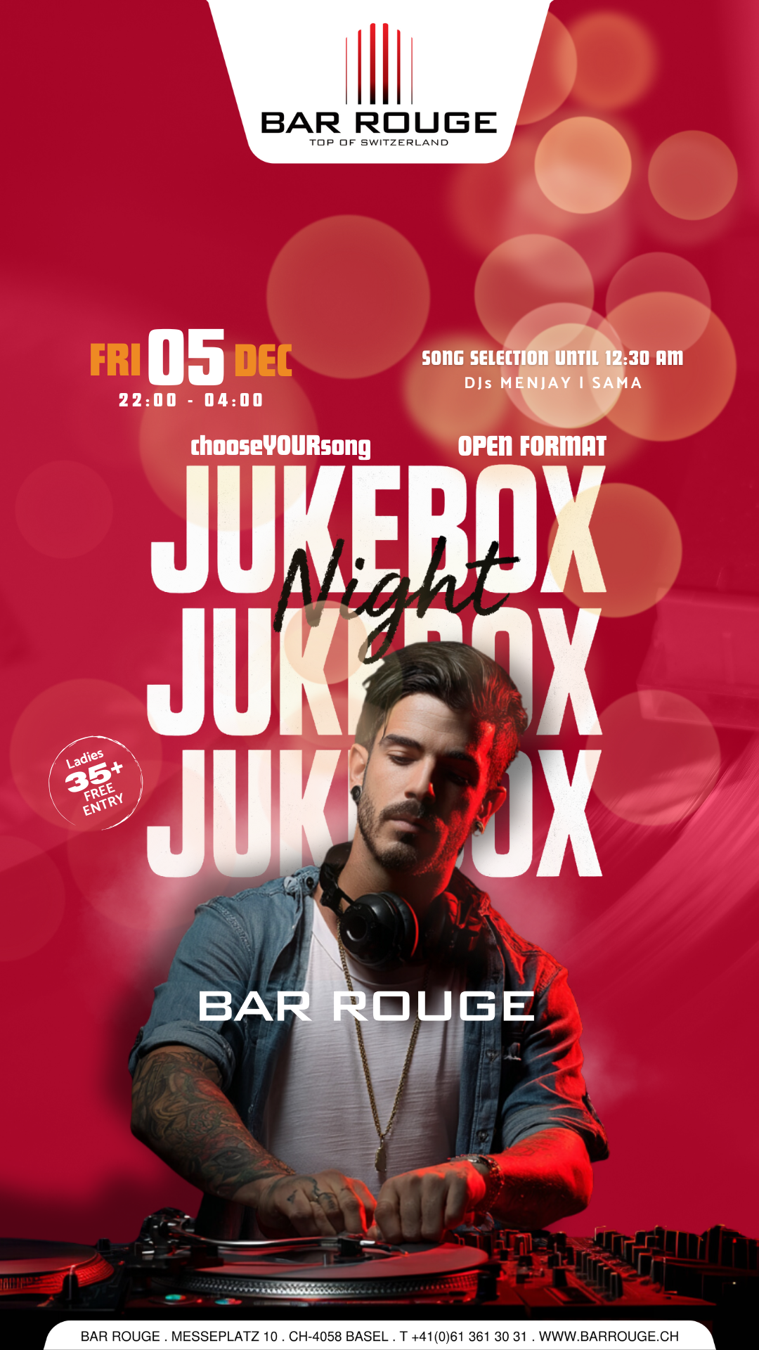 Bereit für die ultimative Party, bei der DU den Ton angibst? Einen Freitag im Monat verwandeln wir die Bar Rouge in die heisseste Jukebox der Stadt!
