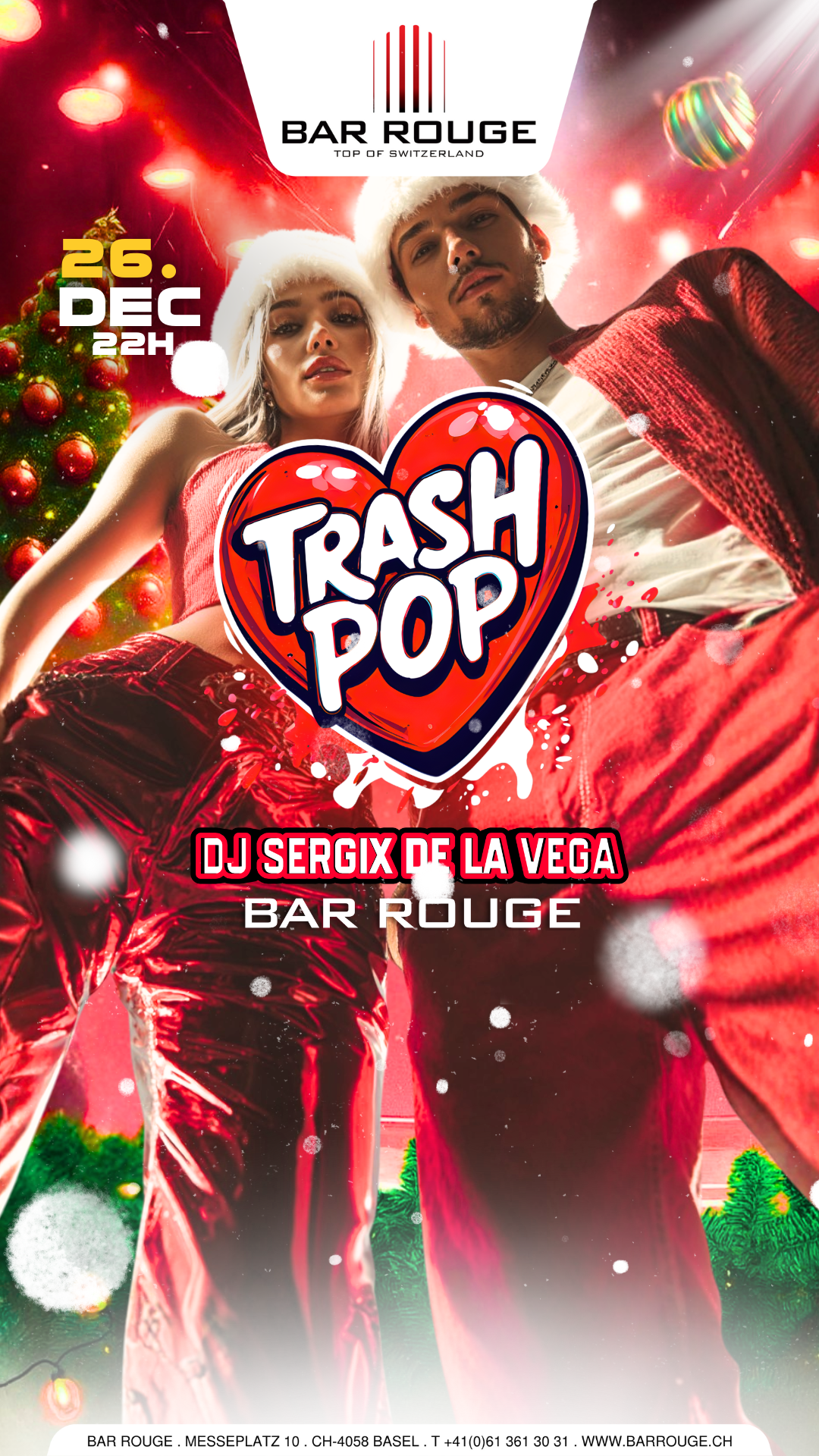 Genug von Stille Nacht? Dann wird’s Zeit für schrille Beats, wilde Tanzeinlagen und den totalen Pop-Wahnsinn! Am 26. Dezember feiern wir in der Bar Rouge zum ersten Mal TRASH POP – die brandneue Partyreihe, die deine liebsten Guilty Pleasures auf den Dancefloor bringt.