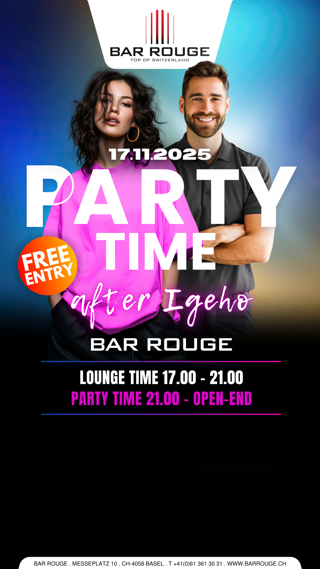 Feiert mit uns nach der IGEHO Messe am Montag über den Dächern von Basel in 105 m Höhe. Lounge Time ab 17:00 Uhr mit den besten Cocktails der Stadt und einer atemberaubenden Aussicht vom 31. Stock des Messeturms. Und ab 21:00 Uhr heizt Euch unser Resident DJ so richtig ein.