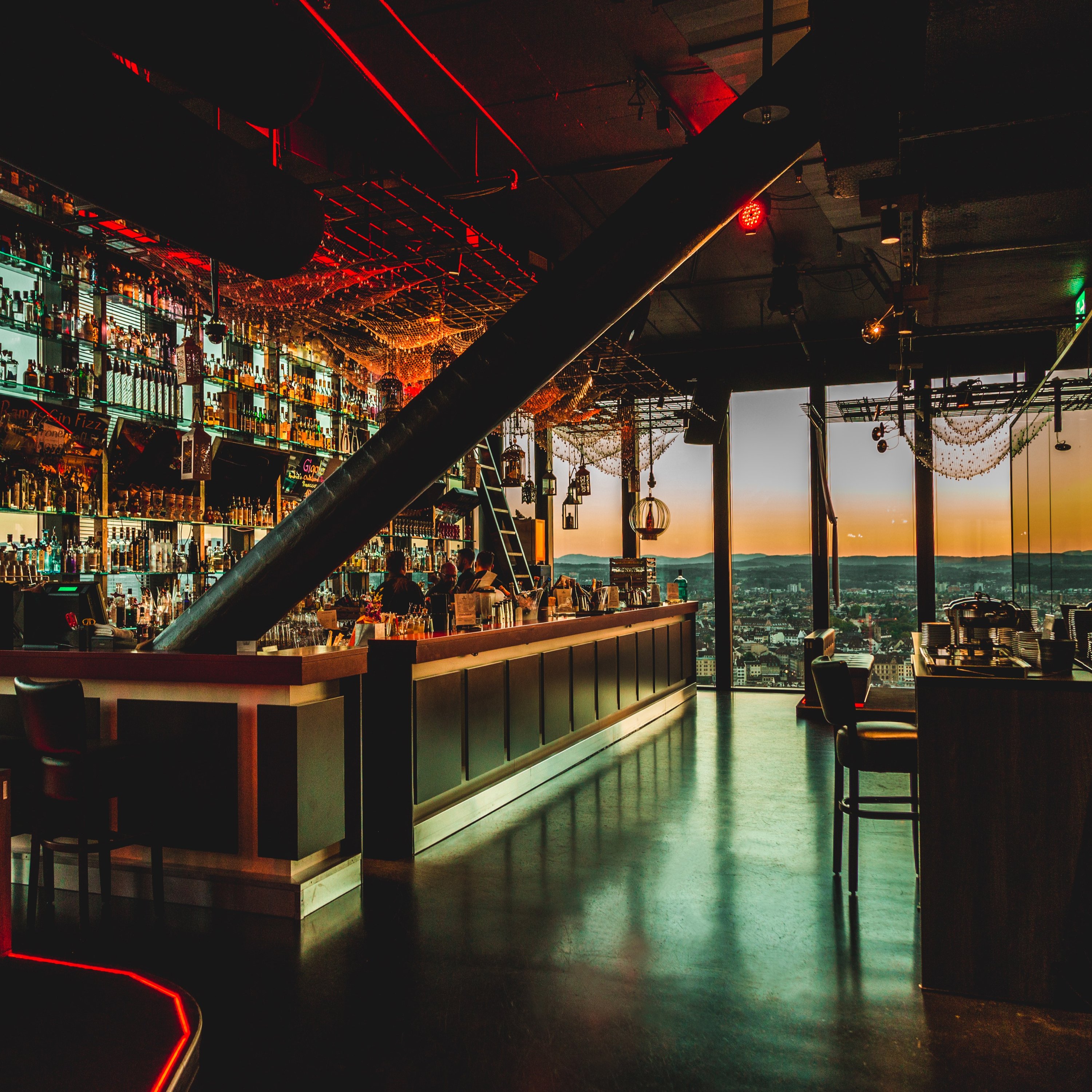 Enjoy an unforgettable evening at Bar Rouge Basel with spectacular panoramic views of the city and first-class cocktails. As one of the most beautiful rooftop bars in Switzerland and one of the best bars in Basel, Bar Rouge offers a unique atmosphere that brings you a little closer to heaven.