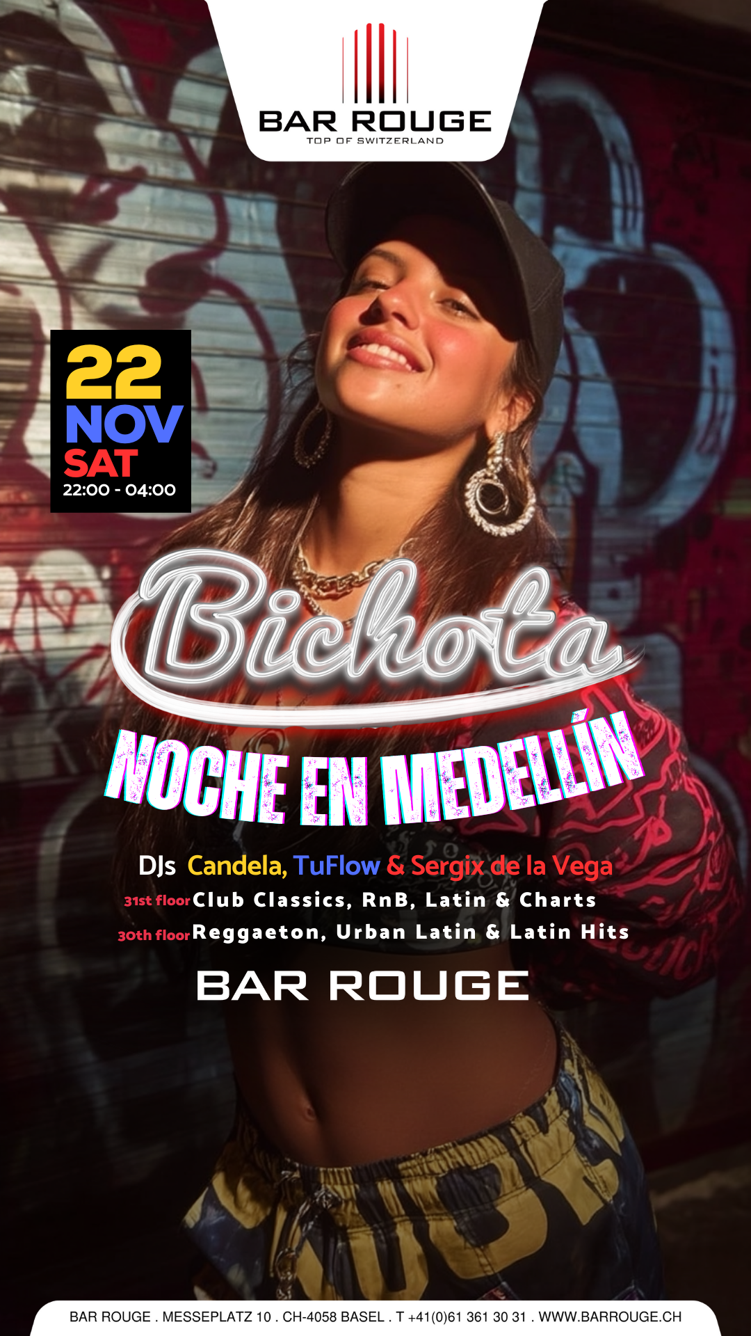 Schwingt auf dem Bichota Floor eure Hüften zu Reggaeton, Urban Latin und weiteren Latin Hits. Hier sind die Männer die Beute. Schnappt euch eure besten Freundinnen, feiert bis zum Morgengrauen und geniesst die spektakuläre Sicht über Basel. Unsere exotischen Cocktails versetzen euch ins ewige Sommerfeeling.