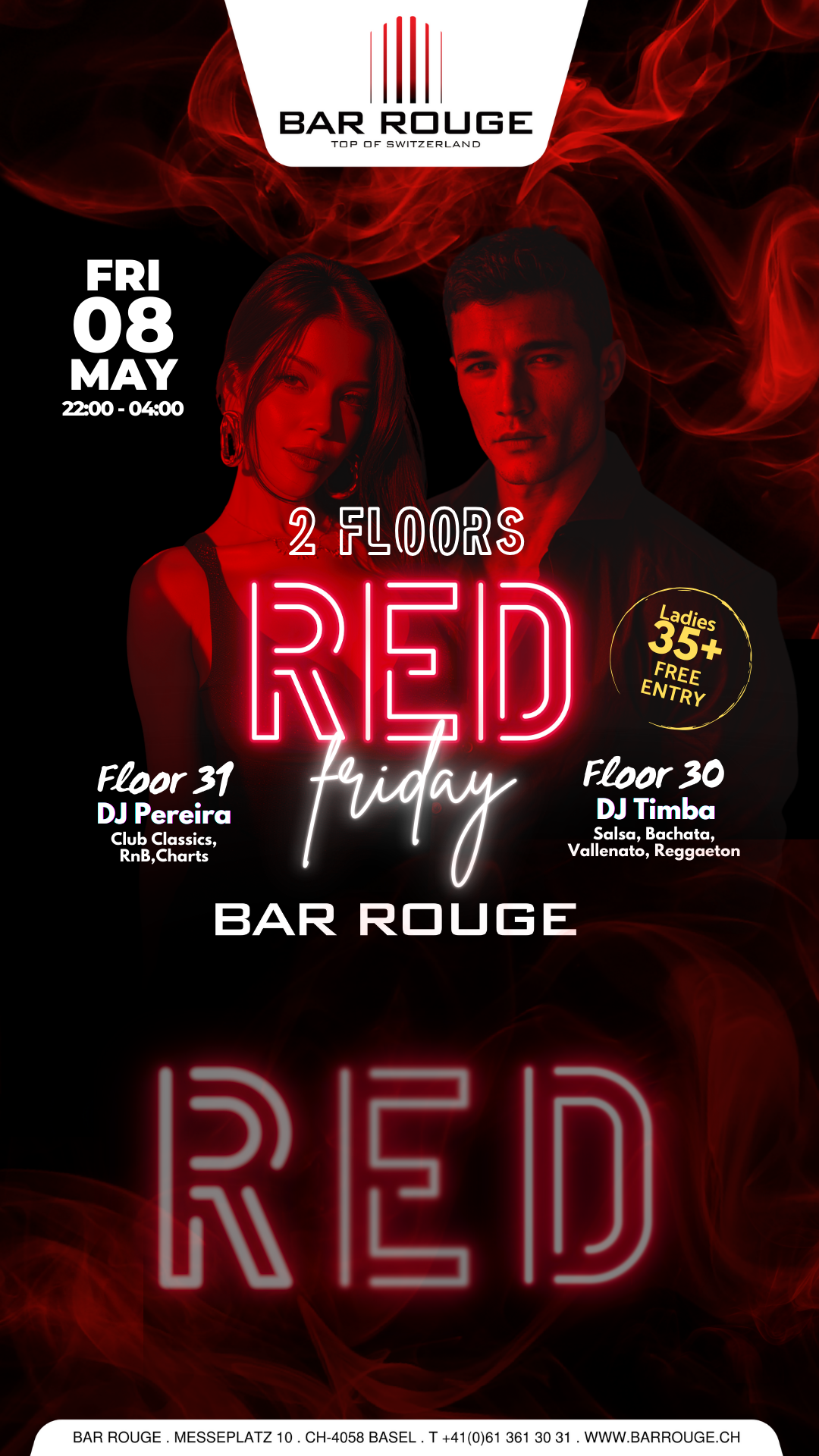 From 10.00pm: CHF 10.- | Ladies 35+ y.o. free entry (No Stags allowed. Please bring a lady!)
