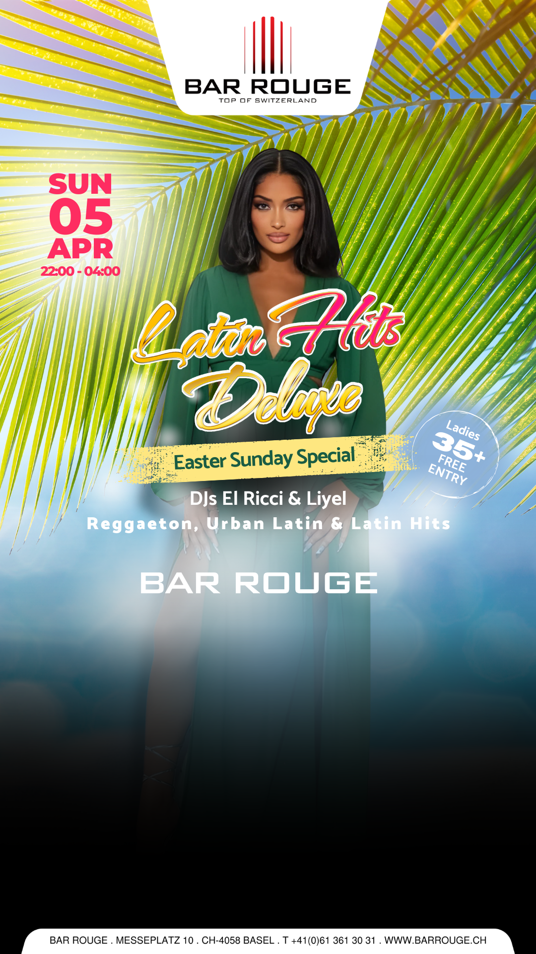 Schwingt eure Hüften zu Reggaeton, Urban Latin und weiteren Latin Hits. Lasst das Thermometer höher schlagen. Unsere exotischen Cocktails setzen dem heissen Feeling noch eins oben drauf! Schnappt euch eure besten Freunde, feiert den ewigen Sommer und geniesst die spektakuläre Sicht über Basel.